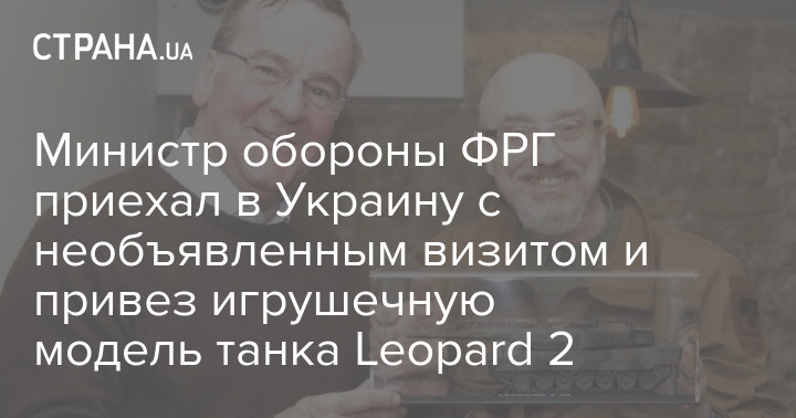 Министр обороны ФРГ приехал в Украину с необъявленным визитом и привез игрушечную модель танка Leopard 2