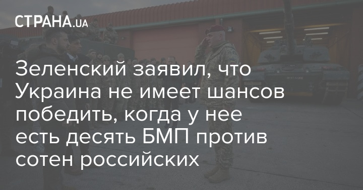 Зеленский заявил, что Украина не имеет шансов победить, когда у нее есть десять БМП против сотен российских