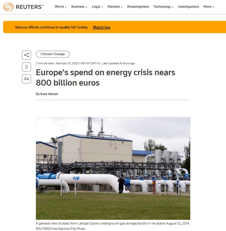 Расходы Европы на борьбу с энергетическим кризисом приближаются к 800 млрд евро.