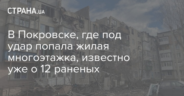 В Покровске, где под удар попала жилая многоэтажка, к 13:00 известно о 12 раненых. Еще по меньшей мере два человека находятся под завалами.
