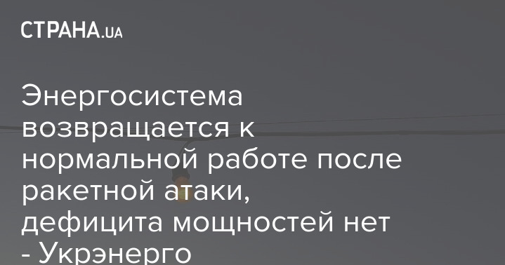 Энергосистема возвращается к нормальной работе после ракетной атаки, дефицита мощностей нет - Укрэнерго