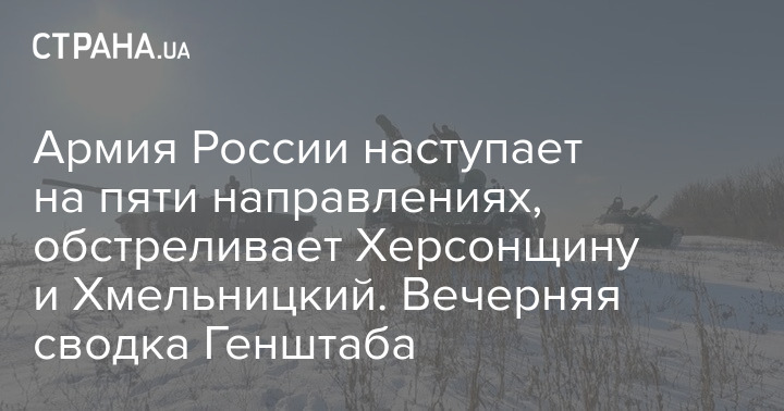 Армия России наступает на пяти направлениях, обстреливает Херсонщину и Хмельницкий. Вечерняя сводка Генштаба