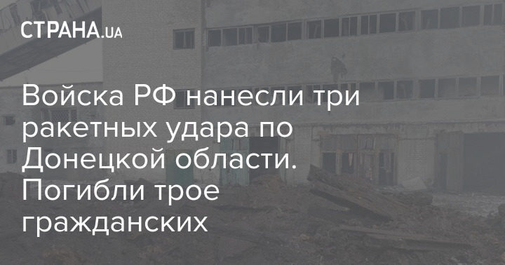 Войска РФ нанесли три ракетных удара по Донецкой области. Погибли трое гражданских