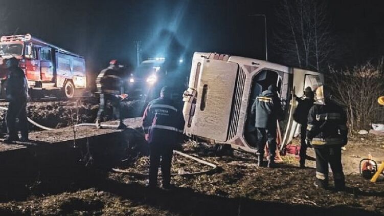 У Тернополя перевернулся автобус с пассажирами, которые ехали из Буковеля. Есть жертвы. Фото