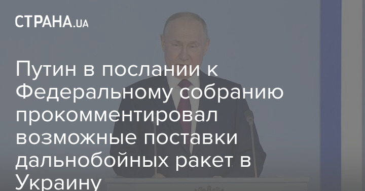 Президент России Владимир Путин в своем сегодняшнем послании к Федеральному собранию РФ на тему войны в Украине прокомментировал возможные поставки дальнобойных ракет в Украину.