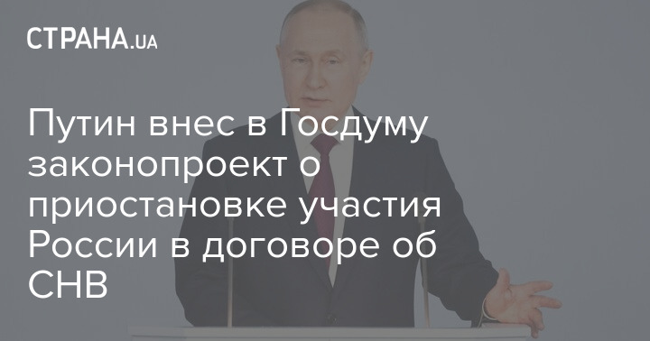 "Президент РФ внес в Государственную думу проект федерального закона "О приостановлении Российской Федерацией действия Договора между Российской Федерацией и Соединенными Штатами Америки о мерах по дальнейшему сокращению и ограничению стратегических наступательных вооружений", - сказал он.