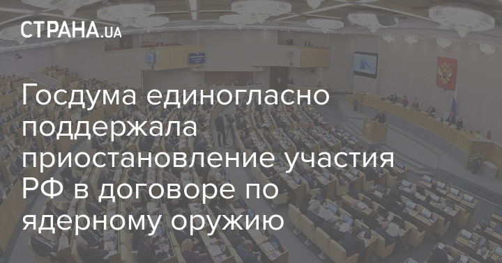 Госдума РФ единогласно поддержала закон о приостановлении участия РФ в договоре с США о сокращении и контроле стратегических наступательных вооружений (ядерного оружия).