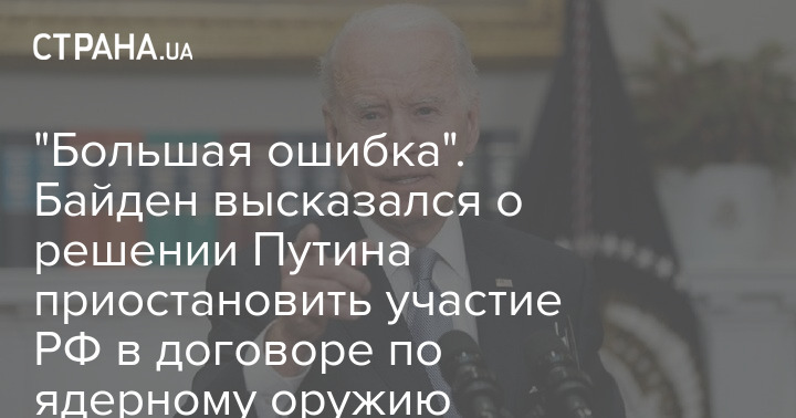 Президент США Джо Байден назвал "большой ошибкой" решение Путина приостановить участие РФ в соглашении о сокращении ядерных вооружений.