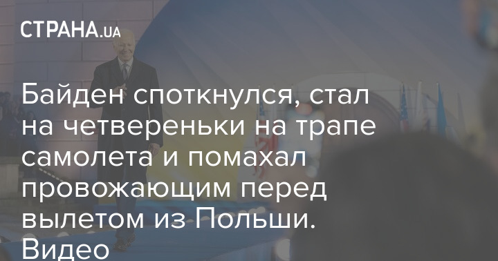 Байден споткнулся, стал на четвереньки на трапе самолета и помахал провожающим перед вылетом из Польши. Видео