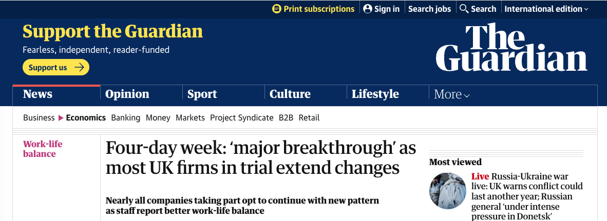 Эксперимент стартовал в июне 2022 года и по его завершении 56 компаний (т.е. около 92%) решили так или иначе оставить "четырёхдневку", а 18 компаний ввели её в свою практику на постоянной основе.