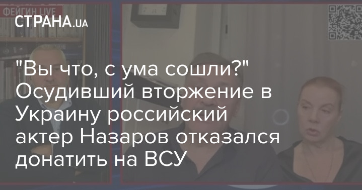 Российский актер Дмитрий Назаров, который выступил с осуждением вторжения РФ в Украину, отказался донатить на ВСУ.