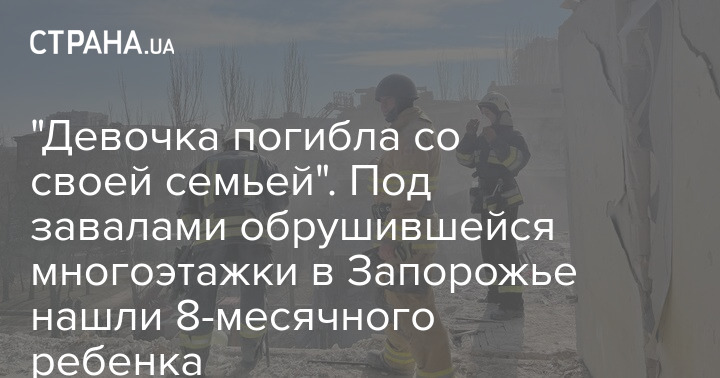 "Девочка погибла со своей семьей". Под завалами обрушившейся многоэтажки в Запорожье нашли 8-месячного ребенка