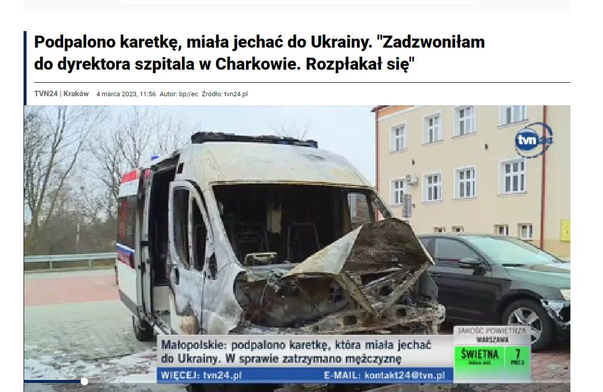 В польском городе Радлов подожгли приготовленные волонтерами к отправке в Украину машины "Скорой помощи". В результате одна машина сгорела полностью, еще одна сильно повреждена.