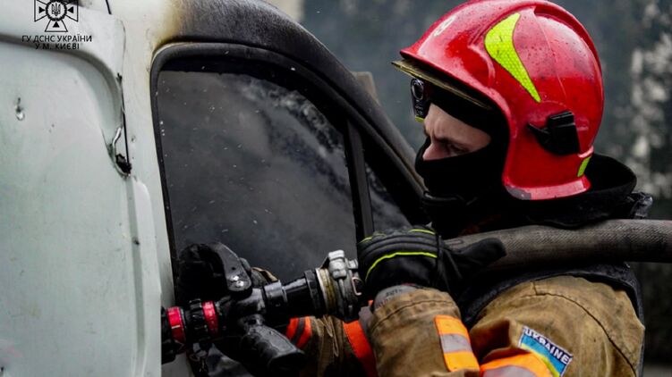 Последствия российской атаки на столицу. Фото: ГосЧС Украины в Киеве