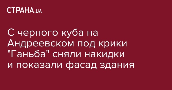 С черного куба на Андреевском под крики "Ганьба" сняли накидки и показали фасад здания