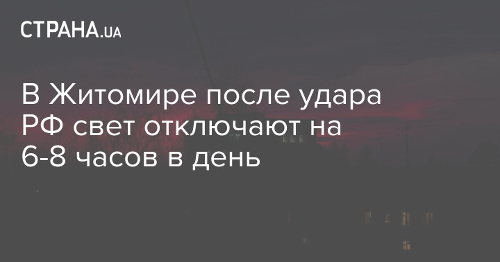 В Житомире после удара РФ свет отключают на 6-8 часов в день
