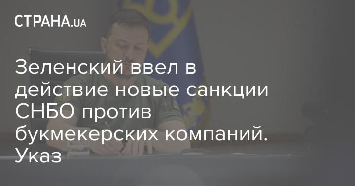 Президент Украины Владимир Зеленский ввел своим указом новые санкции согласно решению Совета национальной безопасности и обороны (СНБО). Санкции введены против букмекерских компаний.