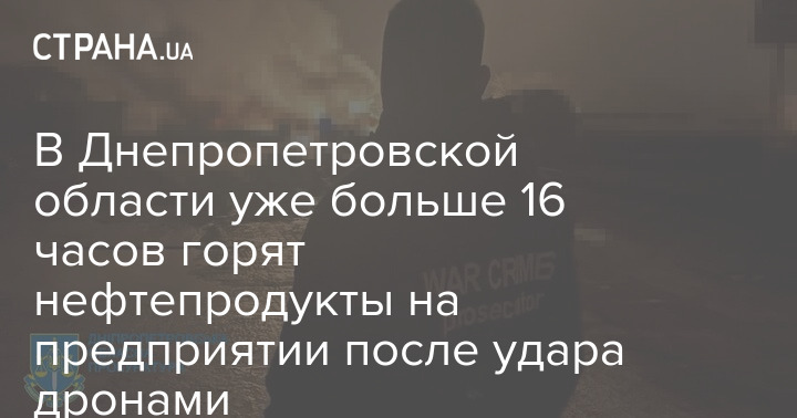 В Днепропетровской области уже больше 16 часов горят нефтепродукты на предприятии после удара дронами