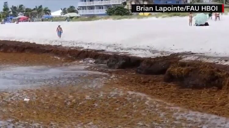В этом году цветение этого вида водорослей - саргассума - началось необычно рано, сказал доктор Брайан Лапойнт, исследователь из Океанографического института отделения Харбор-Бранч при Атлантическом университете Флориды.