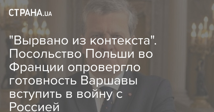 Посольство Польши во Франции фактически опровергло заявление посла страны в Париже Яна Эмерика Ростишевского по поводу готовности Варшавы вступить в войну с Россией.