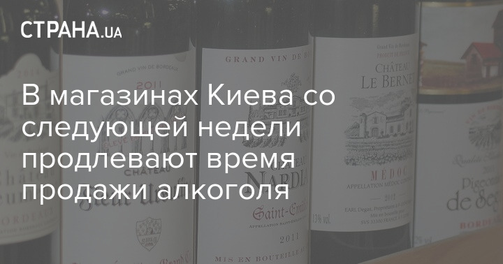 В магазинах Киева со следующей недели продлевают время продажи алкоголя
