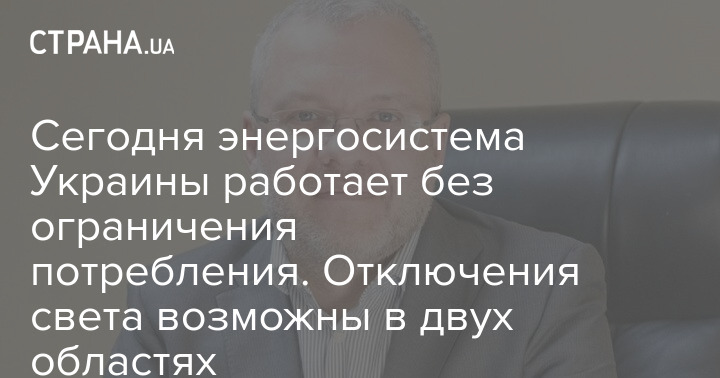 Сегодня энергосистема Украины работает без ограничения потребления. Отключения света возможны в двух областях