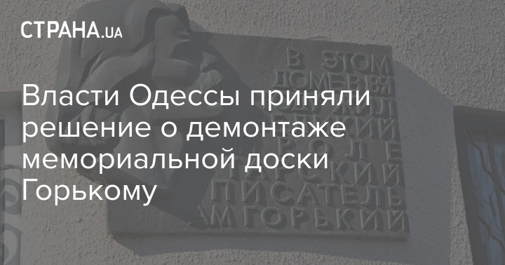 В Одессе горсовет принял решение о демонтаже мемориальной доски писателю Максиму Горькому. Об этом сообщает проект "Деколонизация Украина".