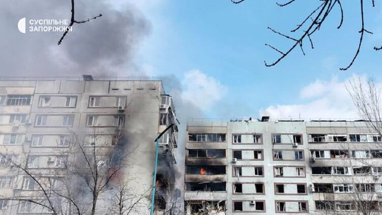 Россияне нанесли удар по жилым домам в Запорожье. Повреждены многоэтажки, вспыхнул пожар. Фото, видео