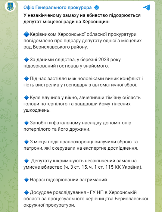 Херсонский депутат чуть не застрелил товарища во время застолья. Фото: t.me/pgo_gov_ua