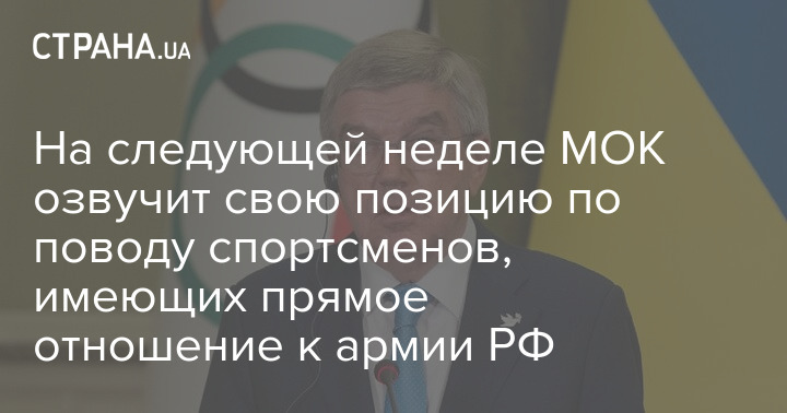 МОК озвучит свою позицию по поводу спортсменов, имеющих прямое отношение к армии РФ, 28 марта на заседании своего исполкома, сообщил глава Комитета Томас Бах.