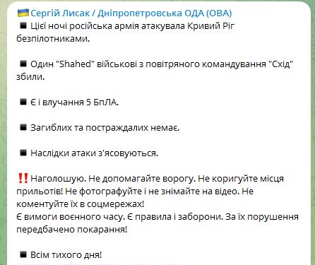 Ночью 24 марта армия РФ атаковала Кривой Рог беспилотниками.