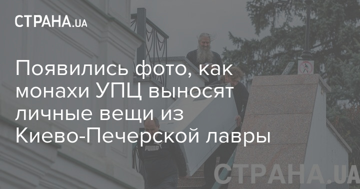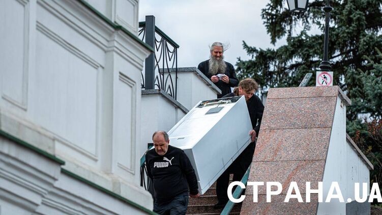 Монахи Украинской православной церкви вывозят вещи из Киево-Печерской лавры.