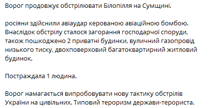 Ночью с 27 на 28 марта был новый обстрел Белополья в Сумской области. На город сбросили еще одну управляемую авиабомбу - в добавок к десяти, которыми обстреляли Белополье в минувшую пятницу.