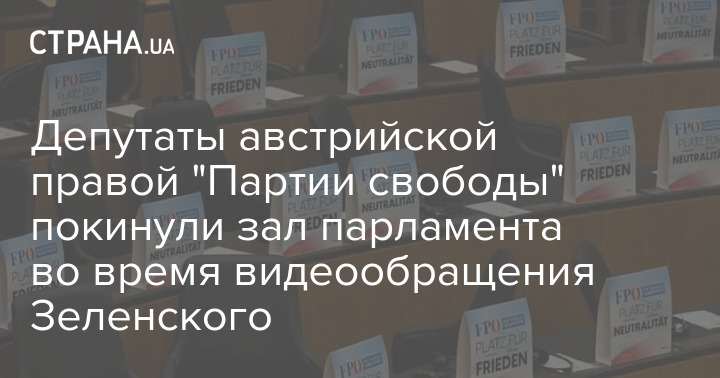 Депутаты австрийской правой "Партии свободы" покинули зал парламента во время сегодняшнего видеообращения президента Украины Владимира Зеленского.