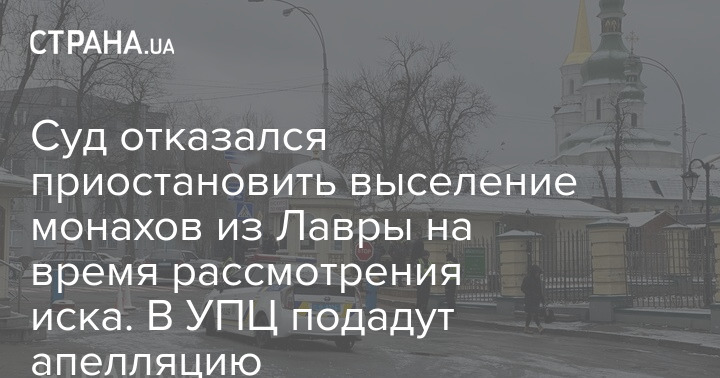 Суд отказался приостановить выселение монахов из Киево-Печерской лавры на время рассмотрения иска УПЦ против решения властей разорвать договор об аренде объектов обители. Приостановить действие решения о разрыва договора аренды УПЦ просила суд в качестве меры обеспечения иска.