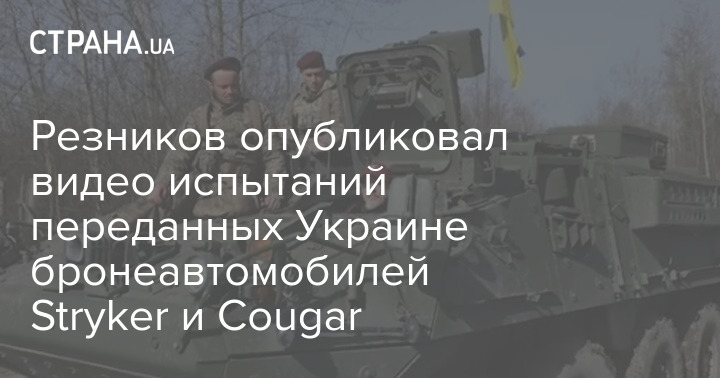 Министр обороны Украины Алексей Резников опубликовал видео испытания переданных Украине бронеавтомобилей Stryker и Cougar и лично проехался в одной из военных машин.