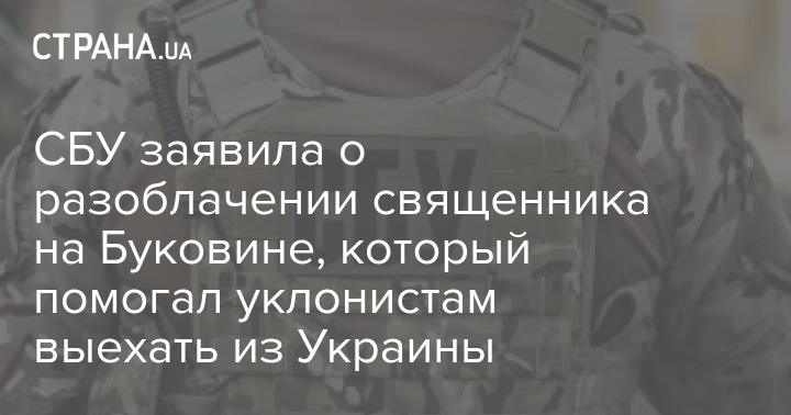 СБУ заявила о разоблачении священника на Буковине, который помогал уклонистам выехать из Украины