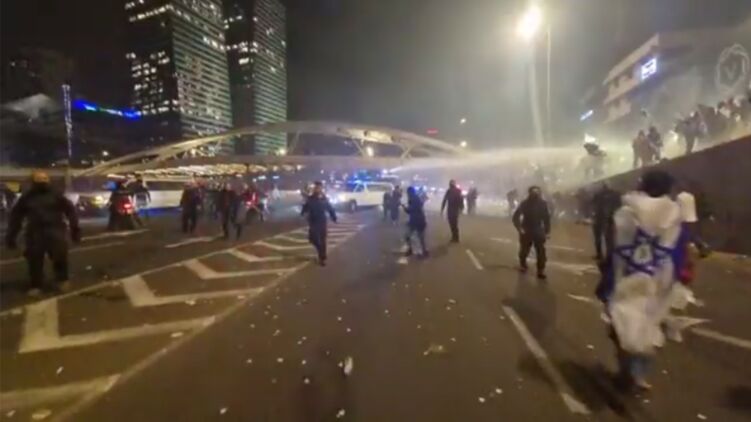 Толпу разгоняют водометами. В Тель-Авиве протестуют и после остановки судебной реформы. Видео