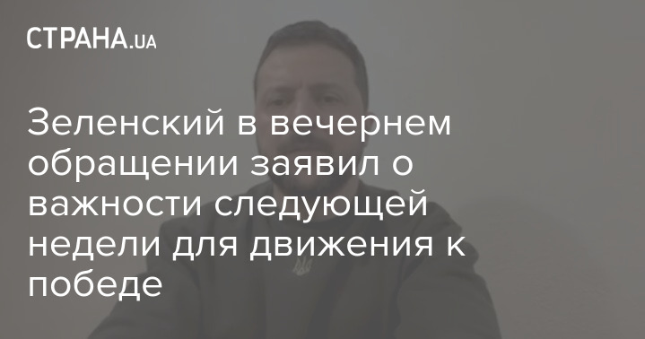 Зеленский в вечернем обращении заявил о важности следующей недели для движения к победе