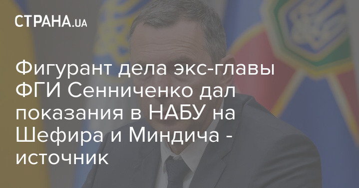 Фигурант дела экс-главы ФГИ Сенниченко дал показания в НАБУ на Шефира и Миндича - источник