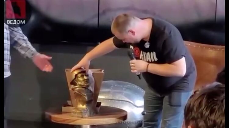 "Настя" сказала, что хочет подарить ему собственноручно созданную скульптуру, но охрана не позволила ее занести, так как "вдруг там бомба". Видимо, тронутый этим Татарский лично разрешил внести бюст, девушка поставила его рядом с ним, на стол по правую руку от Владлена, и когда тот пригласил ее сесть рядом, отказалась, сославшись на стеснительность.