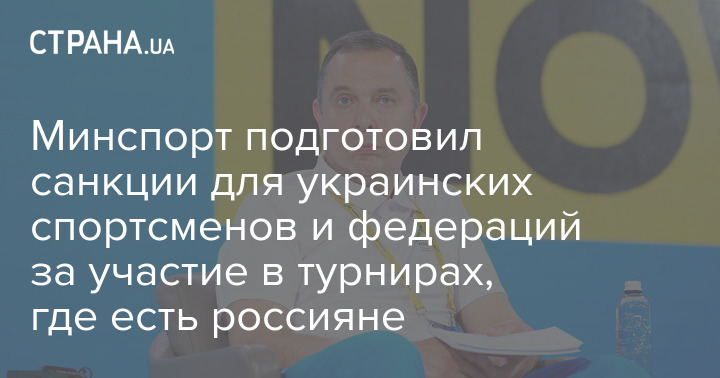 Министерство молодёжи и спорта Украины разработало проект постановления Кабмина, согласно которому украинскую спортивную федерацию могут лишить статуса всеукраинской, если ее спортсмены примут участие в соревнованиях, где будут россияне и белорусы. А сами спортсмены могут попасть под санкции СНБО.