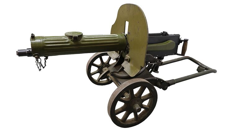 Украинские военные тянут за собой пулеметы "Максим", которые широко применялись ещё в Первую мировую войну.