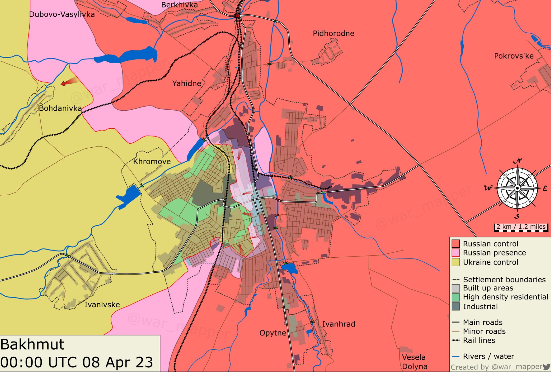 На кадрах с геолокацией, опубликованных 6 апреля, видно, что российские войска продвинулись примерно на три километра к югу от трассы Т0504 Константиновка — Часов Яр — Бахмут.