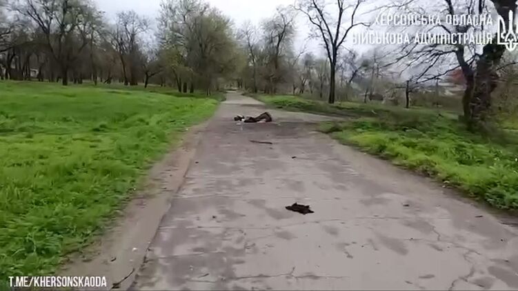 В херсонском парке мужчина погиб в результате артобстрела. Скриншот видео