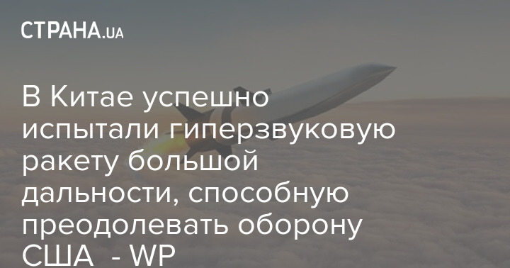 В Китае успешно испытали гиперзвуковую ракету большой дальности, способную преодолевать оборону США - WP