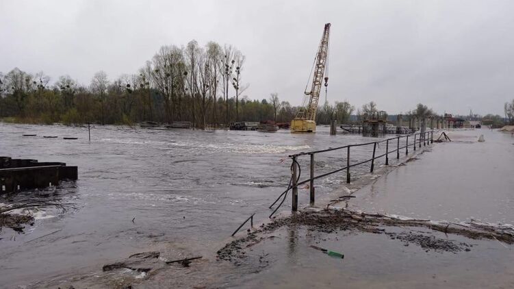 В Иванкове под воду ушла временная переправа после обильных дождей. Фото: t.me/andrii_nebytov