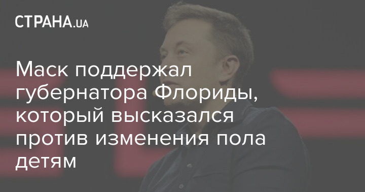 Бизнесмен Илон Маск поддержал губернатора Флориды Рона ДеСантиса, который заявил, что "вы не можете изменить пол своему ребенку во Флориде".