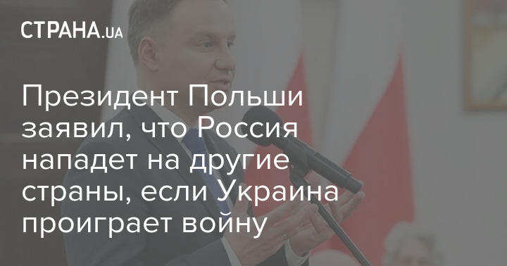 Президент Польши Анджей Дуда заявил, что Россия не должна победить Украину, поскольку тогда она нападет на другие страны.