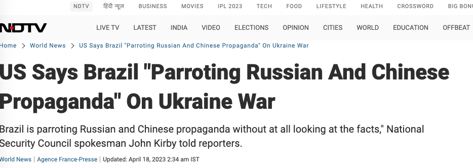 "В этом случае Бразилия повторяет российскую и китайскую пропаганду, совершенно невзирая на факты", - приводит слова Кирби NDTV.